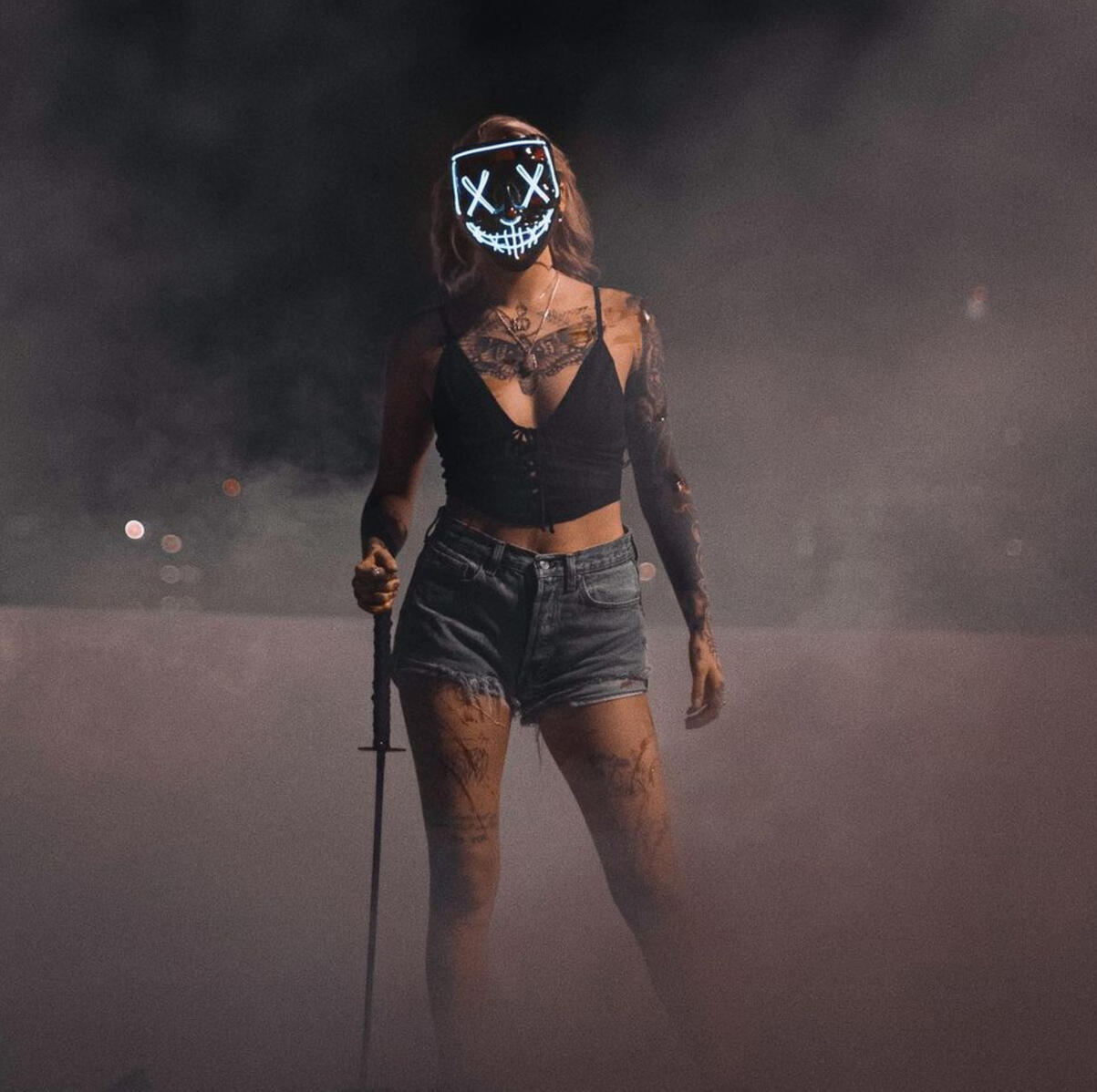 While Sawyer has dozens of scars all around her body, there are two notable scratches across her lips that are easy to spot. She's also all but covered in tattoos, the most iconic of which is the moth across her collarbones and upper chest.