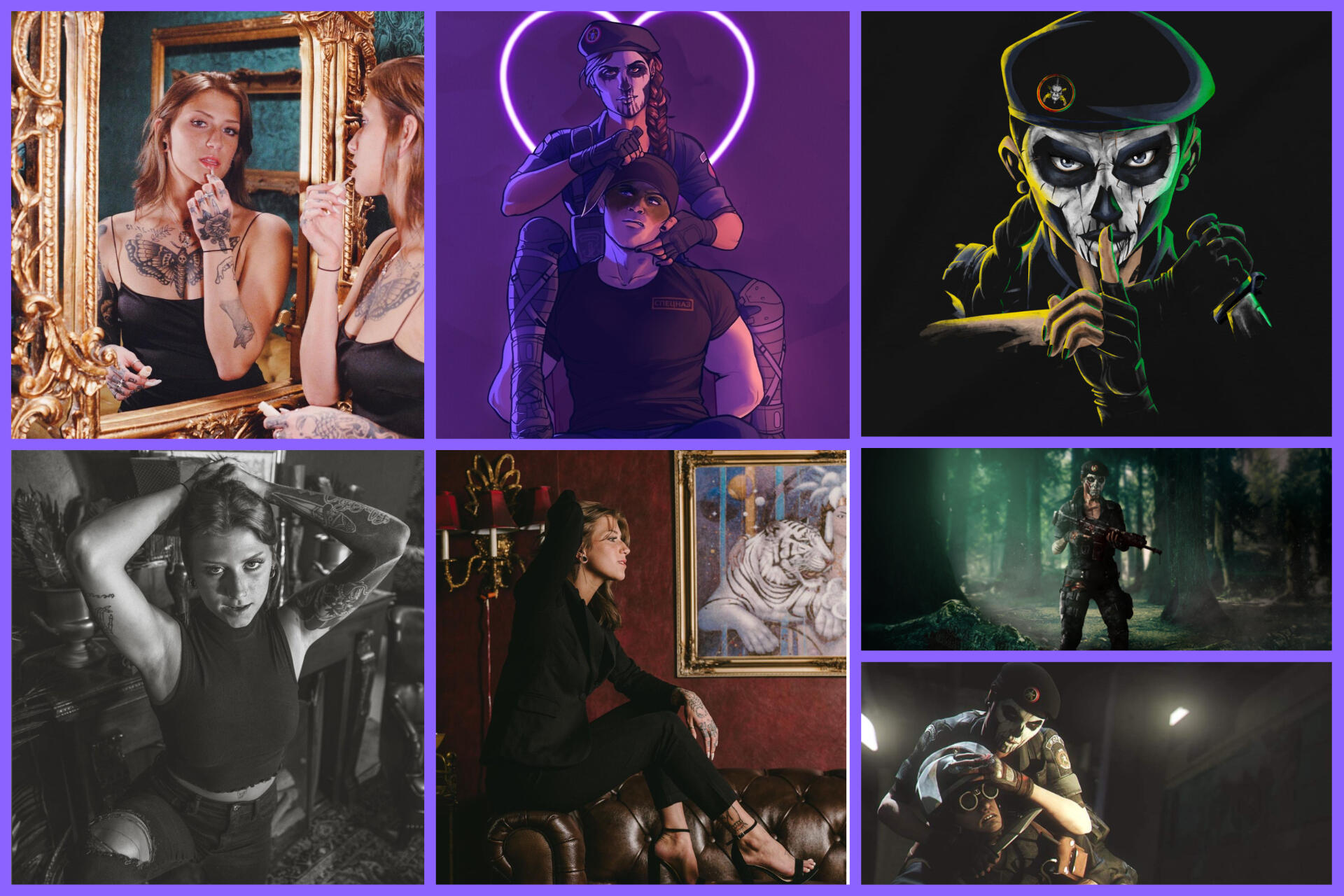 Sawyer almost always keeps in the same security outfit she wore in the Outpost, but with all the branding scratched off or burned out beyond recognition. Going into a fight, she occasionally dons the same skull face facepaint she wore during the explosion at Outpost 9, designed to strike fear into her opponents as well as mask her identity a bit better.
