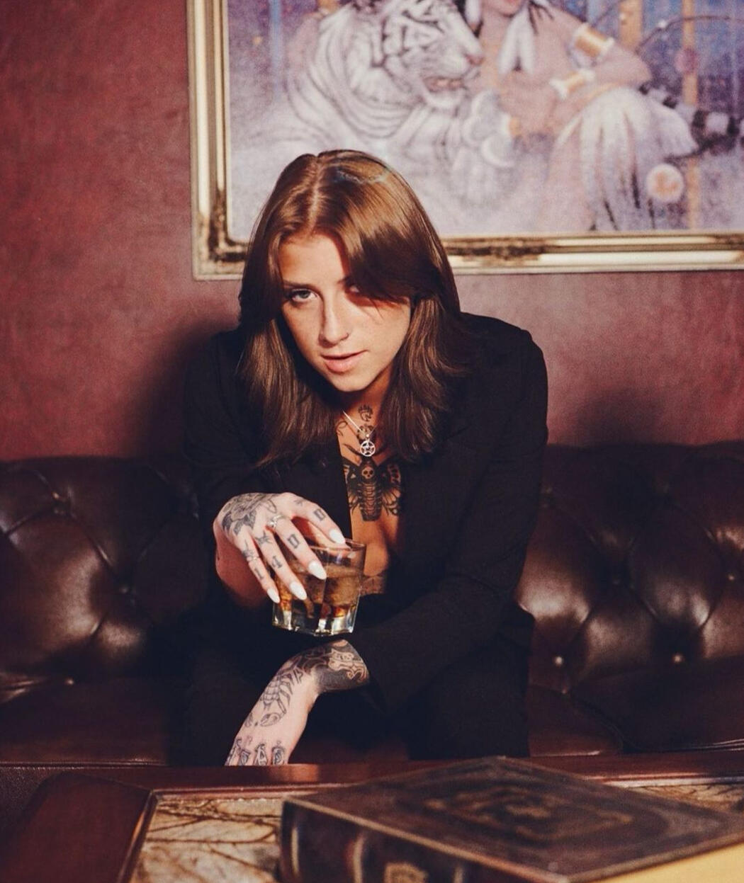 While Sawyer has dozens of scars all around her body, there are two notable scratches across her lips that are easy to spot. She's also all but covered in tattoos, the most iconic of which is the moth across her collarbones and upper chest.